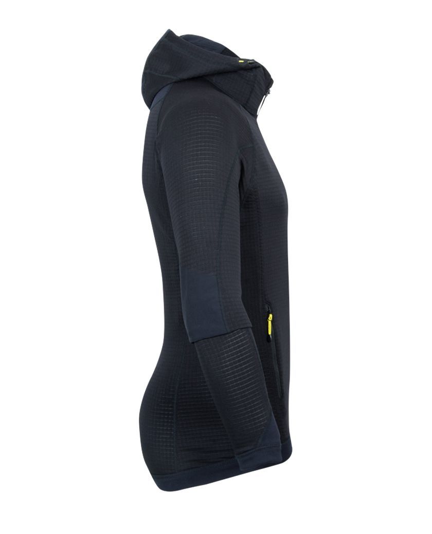 Campera de construcción híbrida diseñada para actividades aeróbicas, un infaltable para carreras de aventura donde el bajo peso, respirabilidad, secado rápido y compactabilidad son indispensables. Combina dos tejidos POLARTEC POWER GRID de diferente peso según las zonas que requieren mayor abrigo, o las que necesitan mayor ventilación, elasticidad y movilidad con menos volumen de tela. Estos tejidos poseen fibras recicladas, acabado odor resistant y protección solar.